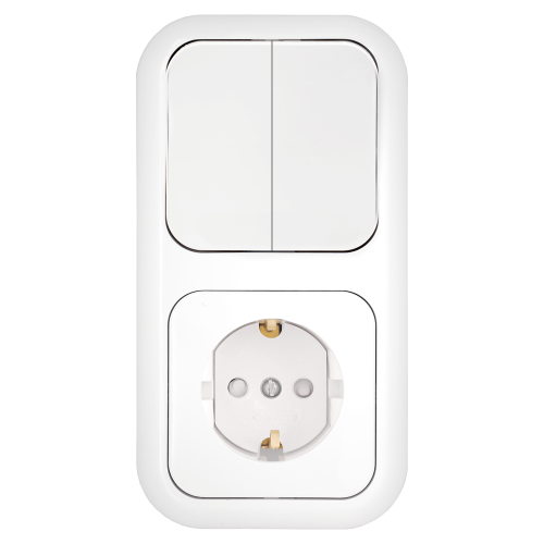Bylectrica Блок 2 выключателя + розетка с заземляющим контактом со шторкой СУ, серия ГАРМОНИЯ, 2В-РЦ-555