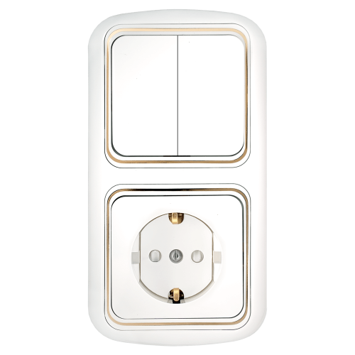 Bylectrica Блок 2 выключателя + розетка с заземляющим контактом СУ со шторками, серия ГАРМОНИЯ ЛЮКС,2В-РЦ-559 з