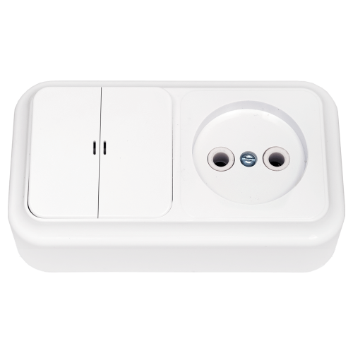 Блок (2 выкл. + роз) ОУ с подсветкой, серия ПРАЛЕСКА, белый (2В-РЦ-565)