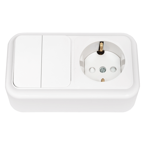 Блок (2 выкл. + роз с з/к) ОУ со шторкой, серия ПРАЛЕСКА, белый (2В-РЦ-579)
