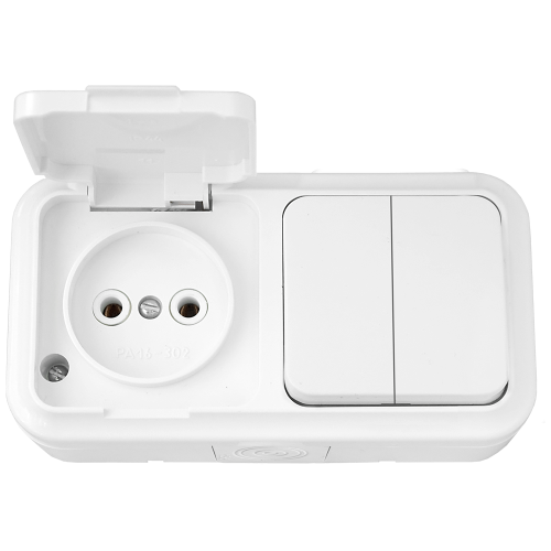Блок (2выкл. + роз) ОУ IP54, серия ПРАЛЕСКА АКВА, белый (2В-РЦ-655)