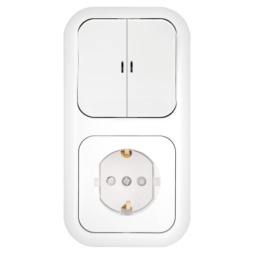 Bylectrica Блок 2-х клавишный выключатель + розетка с заземляющим контактом со шторкой скрытой установки с подсветкой, серия ГАРМОНИЯ, 2В-РЦ-683