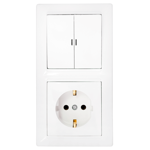 Блок (2 выкл. + роз.з/к) СУ с подсветкой, серия СТИЛЬ, белый (2В-РЦ-703)