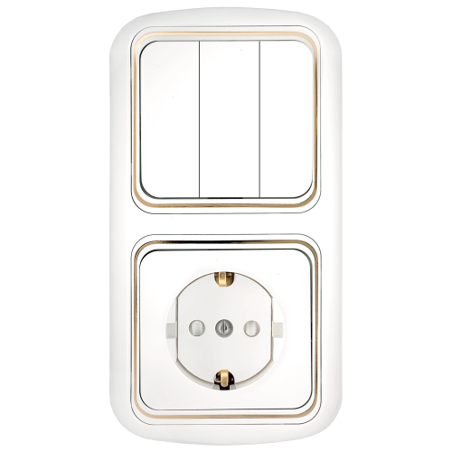 Bylectrica Блок 3 выключателя + розетка с заземляющим контактом СУ со шторками, серия ГАРМОНИЯ ЛЮКС, 3В-РЦ-561 з
