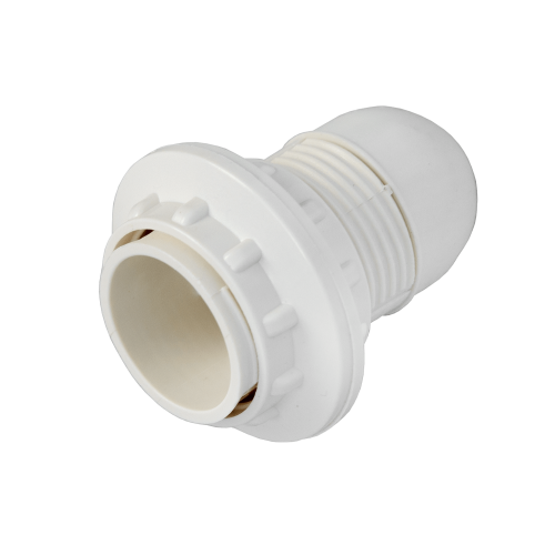 Патрон Е14 с резьбой и с 2-я абажурнымы кольцами, пластмассовый (Е14РК-006 2к)