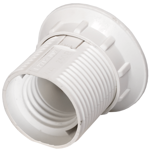 Патрон Е27 с резьбой и абажурным кольцом, пластмассовый (Е27РК-003)