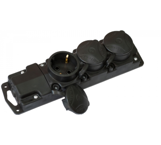 Роз. 3-местн. штепсельная с з/к шторки переносная (каучук) IP44 (Р16-766)