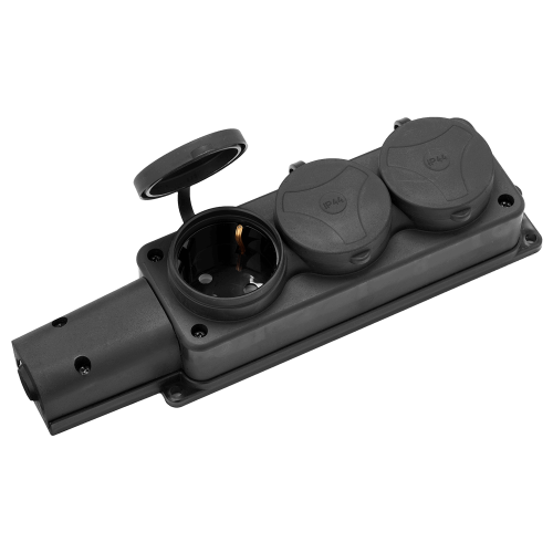 Bylectrica Розетка 3-местная, штепсельная, с контактом заземления, переносная, каучук IP44, Р16-9164