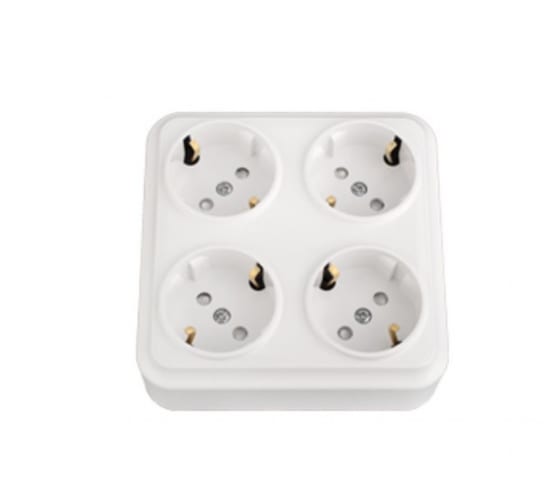 Bylectrica 4-местная розетка открытой установки с заземляющим контактом со шторкой, квадратная, РА16-0196
