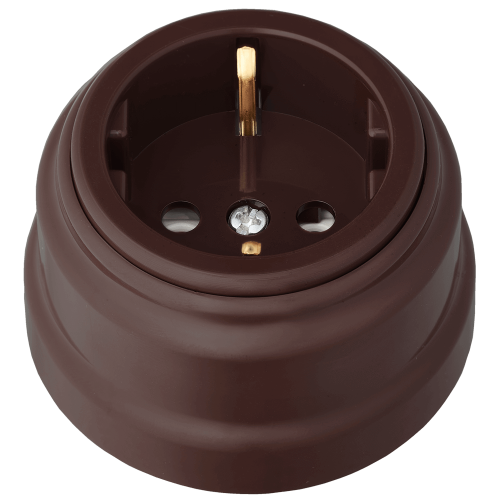 Bylectrica Розетка 1-местная с заземляющим контактом 16А ОУ, серия РЕТРО, РА16-0202 шоколад