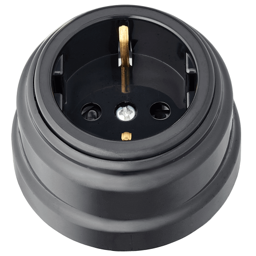 Bylectrica Розетка 1-местная с заземляющим контактом со шторками 16А ОУ, серия РЕТРО, РА16-0206 черный