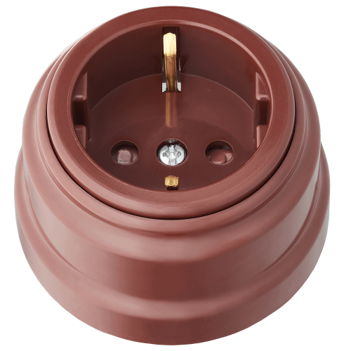Bylectrica Розетка 1-местная с заземляющим контактом со шторками 16А ОУ, серия РЕТРО, РА16-0206 коричневый