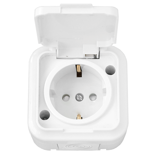 Роз. 1-местн. ОУ с з/к со шторкой IP54, серия ПРАЛЕСКА АКВА, белый (РА16-097)