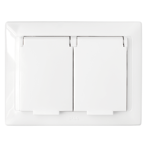 Роз. 2-местн. СУ с з/к со шторк. с крышкой IP44, серия СТИЛЬ, белый (РС16-400)