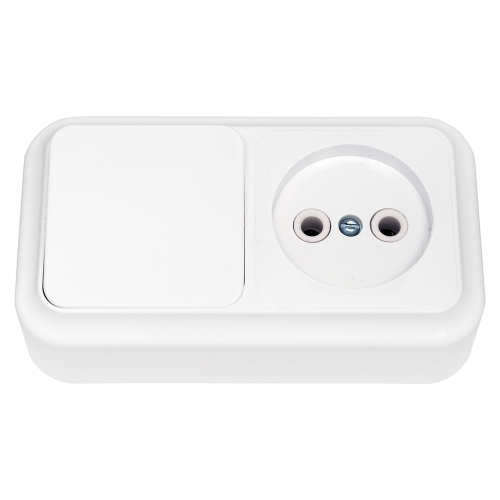 Блок (1 выкл. + роз) ОУ, серия ПРАЛЕСКА, белый (В-РЦ-521)