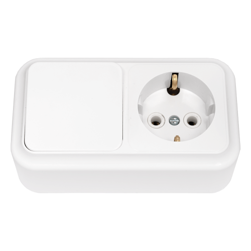 Блок (1 выкл. + роз с з/к) ОУ, серия ПРАЛЕСКА, белый (В-РЦ-527)