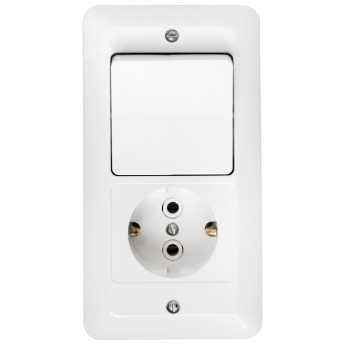 Блок (1 выкл. + роз) СУ, серия ПАРИТЕТ, цвет белый (В-РЦ-647)