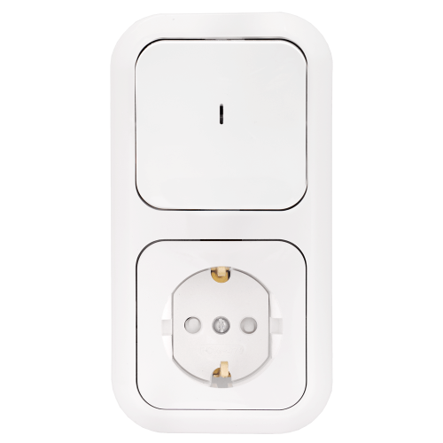 Блок (1 выкл. + роз.з/ксо шторкой) СУ с подсветкой, серия ГАРМОНИЯ, белый (В-РЦ-681)